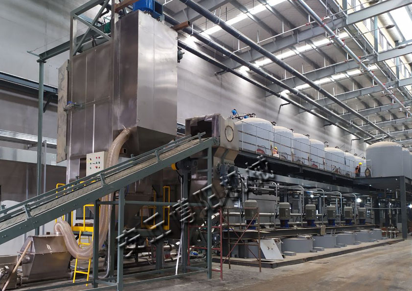 PVC粉噸袋拆包機(jī)+自動(dòng)拆包機(jī)+管鏈輸送機(jī)現(xiàn)場(chǎng)
